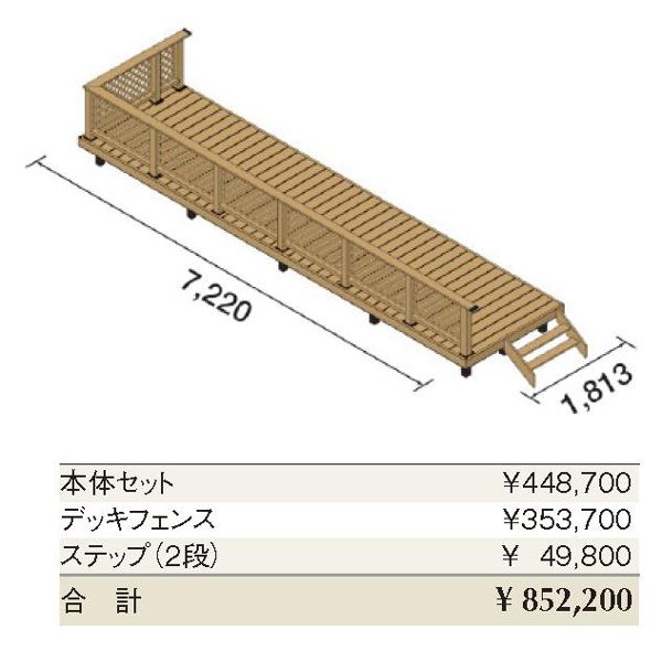 リフォームおたすけ価格40%OFF!●商品のみの送料15,000円。離島、遠隔地(北海道、沖縄含む)はプラス。工事付の場合は送料無料!●商品のみの納期は通常10日以内。●価格にはオプション部材は含まれていません。●価格は基礎束柱Aセットおよび幕板Bセット(薄タイプ)使用で算出しています。●フェンスはデッキフェンスのフラットラチスパネル(密目タイプ)T?8で積算しています(笠木中間部カバー、笠木90度コーナー部カバーは含まれていません)※工事付希望のお客様には無料現地調査にてお打合せの上、見積金額の提出となります(安心のメーカー責任施工。一部ご希望にそえない地域があります。)●オプション選択項目